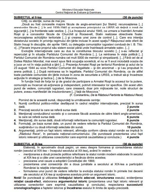 Subiecte simulare bacalaureat istorie 2021.
