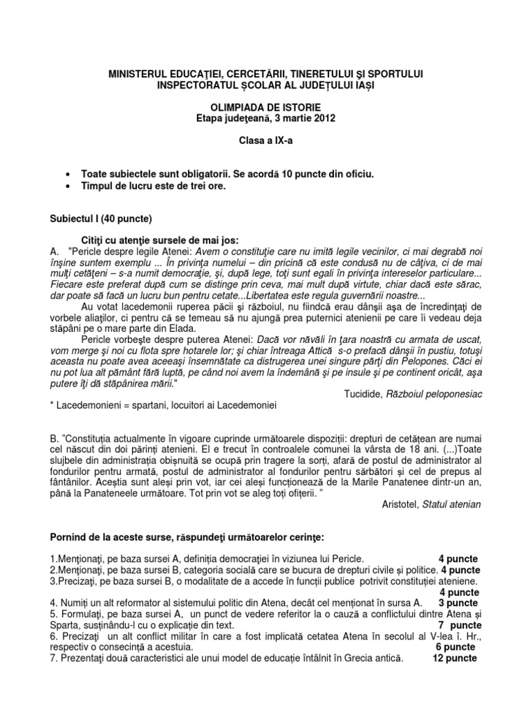 Astfel, examenele vor avea loc în 93 de centre de bacalaureat, dintre care 31 vor fi în mun. În acest an, 8 639 de candidați au scris test la istoria românilor și universală. O lista completa de articole ce au eticheta subiecte bac 2021 istorie | pagina 1. O istorie vie care doare… 28 iunie 20206 iulie 2020 mirela roşioru. Probele pentru examenul naţional de bacalaureat, sesiunea 2021, încep la ora 09:00.